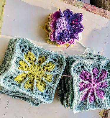 My pile of motifs for the Field of Flowers Afghan is growing 20 complete and 5 flower. Yes I know those ends!Eve's Sunflowers