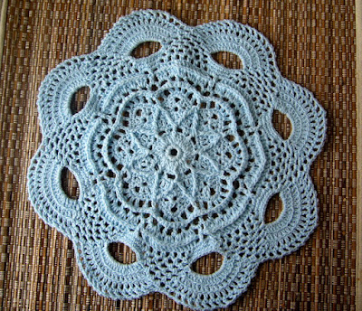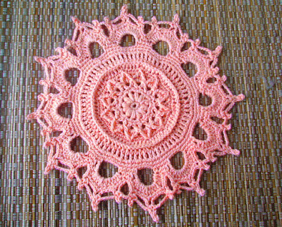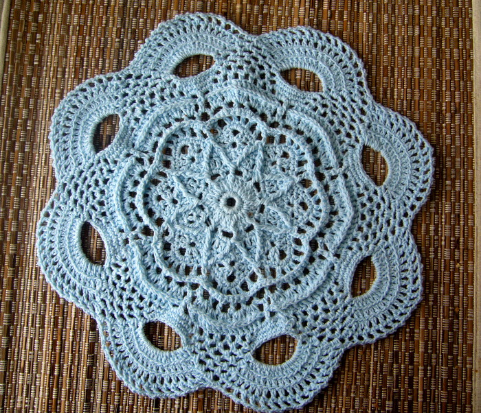 While on Pinterest (isn’t it a wonderful site, but one that sucks away your time, lol.) I saw some doilies by Grace Fearon, So I investigated her website and she had several free patterns, which I duly downloaded and found myself doing two doilies over the last week!  I love her patterns they are highly textured.